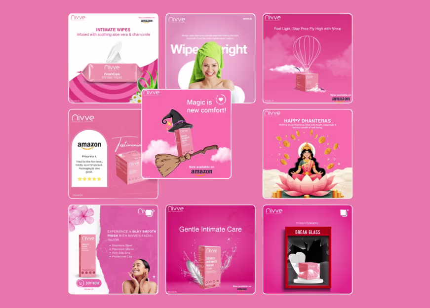 Established a unique and relatable brand identity for their intimate hygiene products. This included designing packaging, logos, and brand colors that conveyed trust and innovation.
